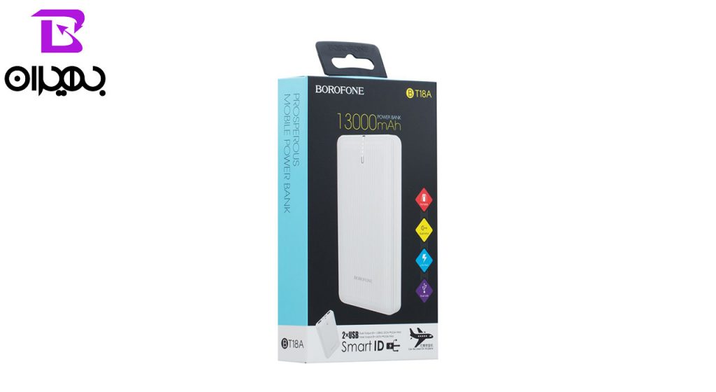 شارژر همراه بروفون مدل BT18 A مناسب برای شارژ موبایل و تبلت و سایر دستگاه های دیجیتالی شما می باشد. باتری این پاور بانک از نوع پلیمری با ظرفیت 13000 میلی آمپر ساعت و ولتاژ ورودی و خروجی آن 5.0 ولت می باشد. همچنین با شدت جریان ورودی 2 آمپر شارژ میشود. اگر دو گوشی موبایل نیازمند به شارژ داشته باشید، این شارژر همراه، با وجود 2 درگاه خروجی USB آن دو را هم زمان شارژ می کند.