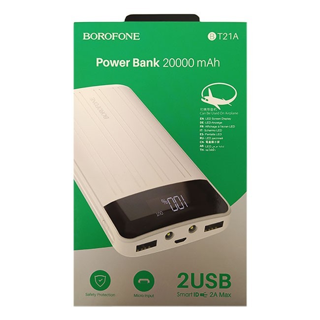 شارژر همراه بروفون مدل BT21A دارای ظرفیت اسمی 20000 میلی آمپر ساعت می باشد. این پاوربانک دارای چراغ LED بوده که میزان شارژ دستگاه را نمایش می دهد. علاوه بر آن دارای چراق قوه ای است که از آن می توانید برای اتصال کابل به دستگاه در فضای تاریک استفاده نمایید. دارای 1 پورت ورودی MicroUSB با ولتاژ 5 ولت و شدت جریان 2 آمپر جهت شارژ دستگاه می باشد. 2 پورت خروجی USB آن نیز دارای ولتاژ و شدت جریان 5V و 2A بوده و از آن ها می توانید برای شارژ همزمان دو دستگاه استفاده نمایید.