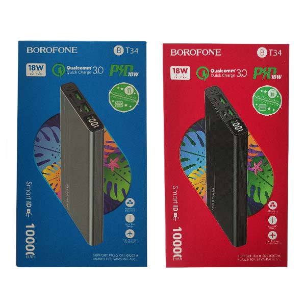 شارژر همراه بروفون مدل BT34 ظرفیت 10000 میلی آمپر ساعت یکی از بهترین پاوربانک ها برای افرادی است که می خواهند یک شارژر همراه سبک و خوب داشته باشند. این پاوربانک دارای دو پورت خروجی USB با ولتاز و شدت جریان 3.6V-6.5V/3A, 6.6-9V/2A, 9.1V-12V/1.5A ، یک ورودی MicroUSB با ولتاژ و شدت جریان 5V/2A, 9V/2A, 12V/1.5A و یک پروت ورودی و خروجی Type-C با ولتاژ و شدت جریان خروجی 5V/3A , 9V/2A , 12V/1.5A و ولتاژ و شدت جریان ورودی 5V/2A , 9V/2A (PD), 12V/1.5A می باشد.