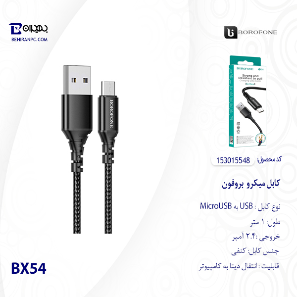 کابل تبدیل USB به MicroUSB بروفون مدل BX54 طول 1 متر