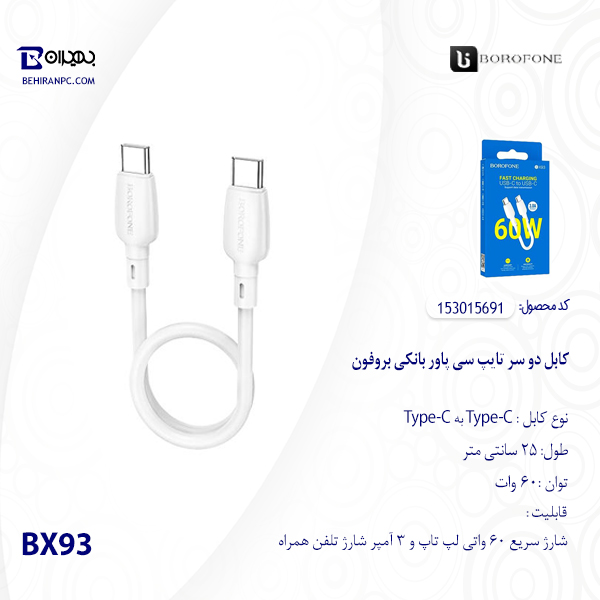 کابل دو سر تایپ سی پاور بانکی بروفون مدل BX93 طول 25cm عدد