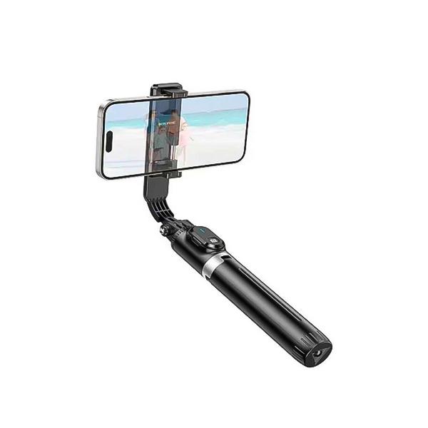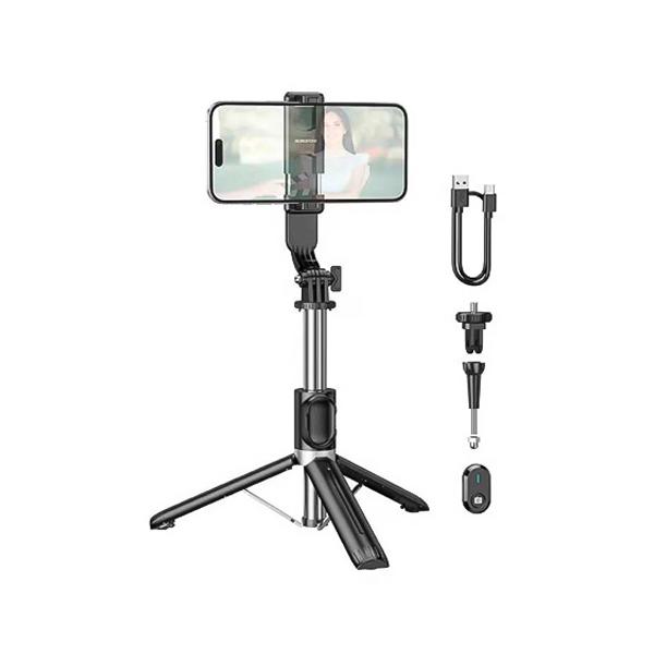کنترل از راه دور بلوتوثی: یکی از ویژگیهای منحصر به فرد این پایه، داشتن کنترل از راه دور است که از طریق بلوتوث ارتباط برقرار میکند. این قابلیت به شما این امکان را میدهد که بدون نیاز به لمس گوشی، ویدئو را ضبط کنید، یا از راه دور عکس بگیرید. این ویژگی بهویژه در مواقع پخش زنده یا زمانی که دستها مشغول هستند بسیار مفید است.