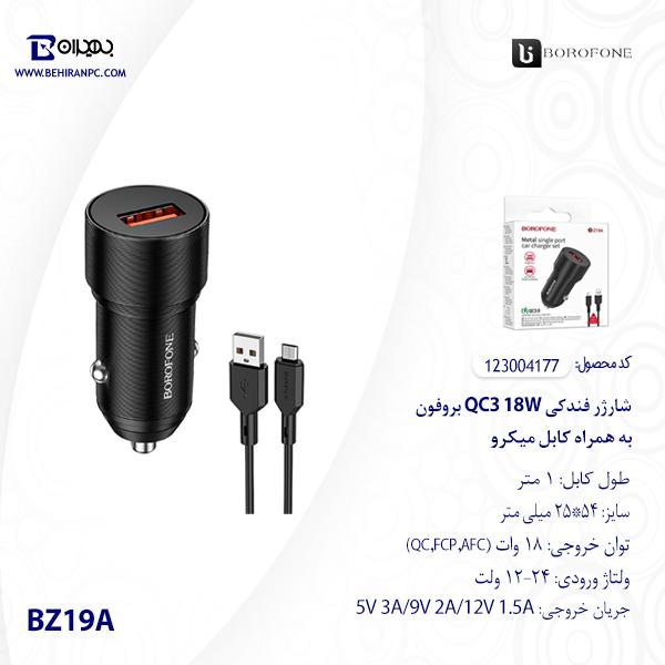 شارژر فندکی QC3 18W بروفون مدل BZ19A به همراه کابل MicroUSB
