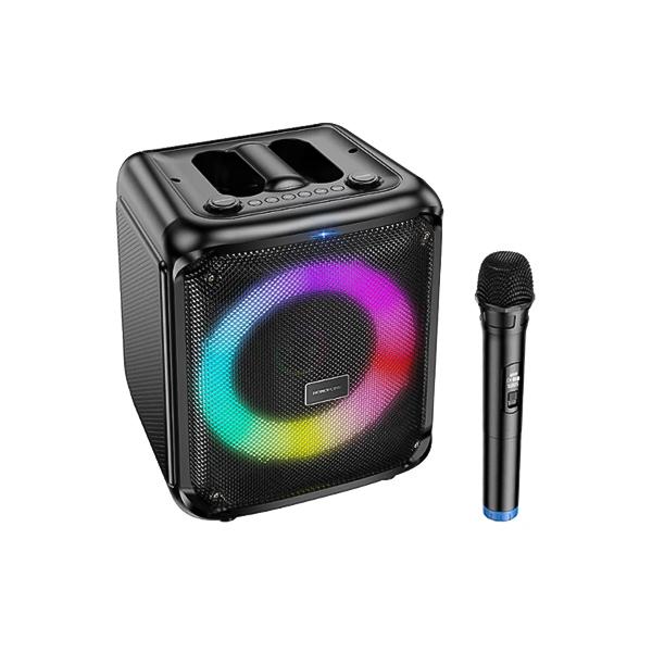 ابعاد مناسب 336*272*280 میلیمتر و وزن 3.8 کیلوگرم این اسپیکر، جابجایی آن را آسان کرده و با نورپردازی RGB، محیط اطراف را بهزیبایی روشن میکند و فضایی هیجانانگیز برای مهمانیها و دورهمیها بهوجود میآورد.