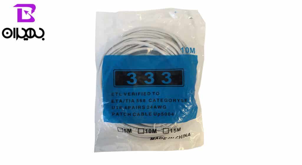 کابل شبکه Cat5 مدل 333 جهت اتصال مودم به لپ تاپ، کامپیوتر و… استفاده می شود. این کابل 10 متر طول دارد و از کیفیت ساخت بالایی برخوردار است.