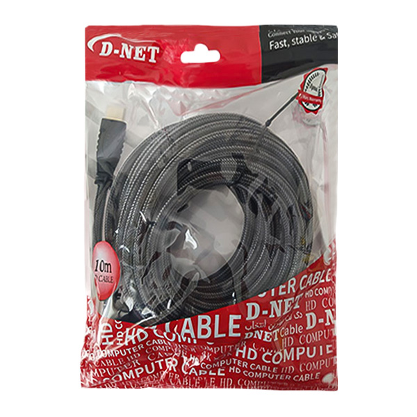 کابل HDMI دی-نت به طول ۱۰ متر از فرمت های تصویری 4k و full HD پشتیبانی میکند. این کابل دارای کانکتورهایی با پوشش سه لایه آلومینیم برای جلوگیری از پیچیدگی و با پاره شدن است.