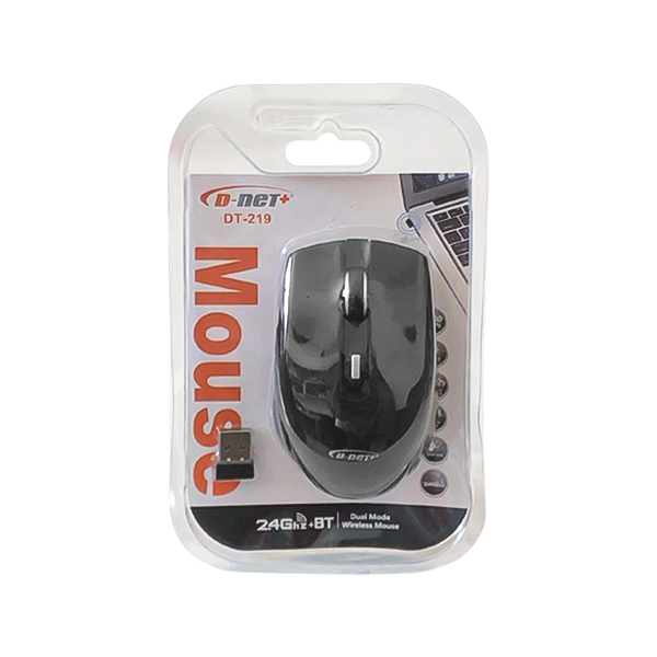 ماوس یکی از لوازم ضروری جانبی کامپیوتر و لپ تاپ می باشد که درمدل های بی سیم و وایرلس به بازار عرضه شده است. ماوس دی-نت مدل DT-219 از نوع بی سیم می باشد و از یک دانگل USB برای اتصال به کامپیوتر، لپ تاپ بهره برده است.
