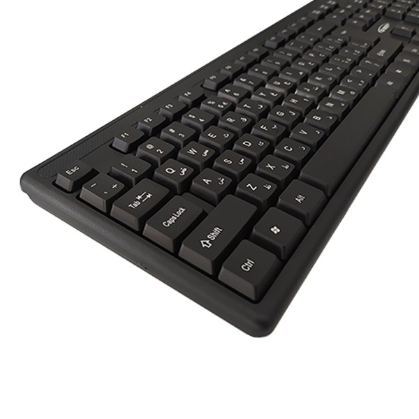 این کیبورد 104 کلید استاندارد دارد که تجربه تایپ روان و راحتی را برای کاربران فراهم میکند. همچنین حروف فارسی به صورت حک شده روی کلیدها قرار گرفتهاند که برای کاربرانی که نیاز به تایپ فارسی دارند، بسیار کاربردی و مفید خواهد بود.