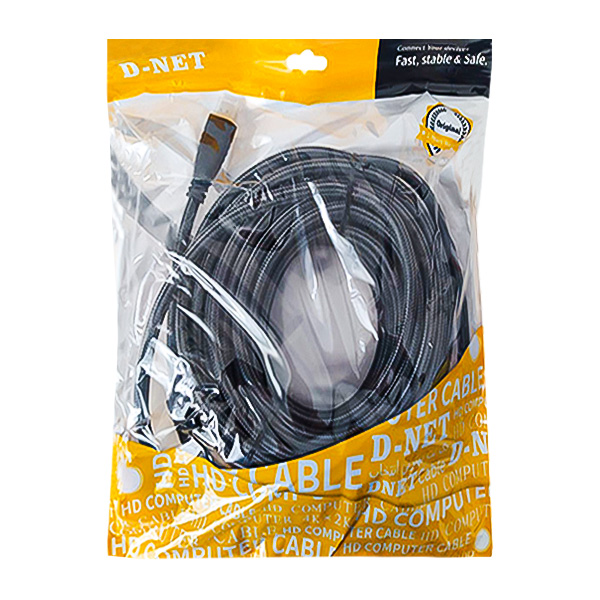 کابل HDMI دی-نت مدل ۱۵M برای انتقال داده های صوتی و تصویری بین تمام دستگاه هایی است که درگاه HDMI دارند. این کابل از فایل های ۲K ، ۴۷ و Full HD پشتیبانی می کند. کانکتورهای این کابل از جنس فلز طلا هستند تا دربرابر اکسید شدن مقاوم بوده و نویزها را تا حد امکان کاهش دهد. طول این کابل ۱۵ متر است.