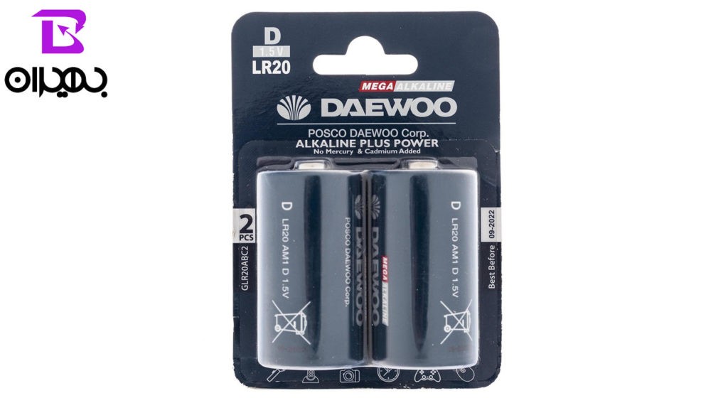 باتری بزرگ دوو مدل Alkaline plus Power با ولتاژ 1.5 ولت در بسته بندی 2 عددی عرضه می شود.