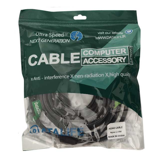کابل HDMI دیتالایف مدل 206 با طول 5 متر، جهت انتقال صدا و تصویر به صورت همزمان در دستگاه هایی مثل ویدئو پروژکتور، دی وی دی پلیر، لپ تاپ، تلویزیون و… استفاده می شود. این کابل روکش کنفی دارد و بسیار مقاوم است.