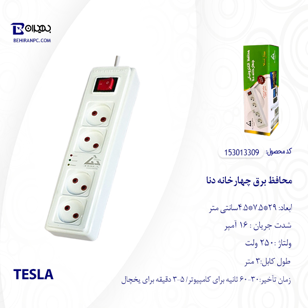 محافظ برق چهار خانه دنا مدل تسلا کابل 3 متر