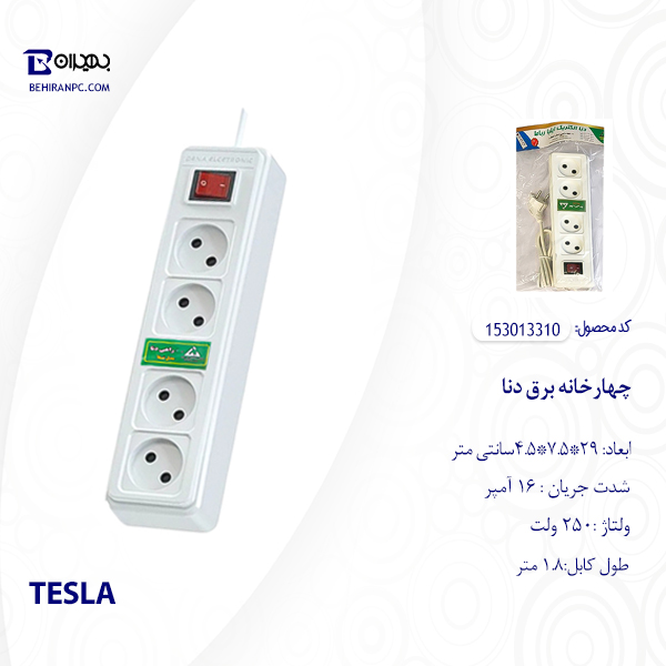 چهار خانه برق دنا مدل تسلا طول کابل 1.8 متر dena-tesla-4port-1-8m-surge-protector
