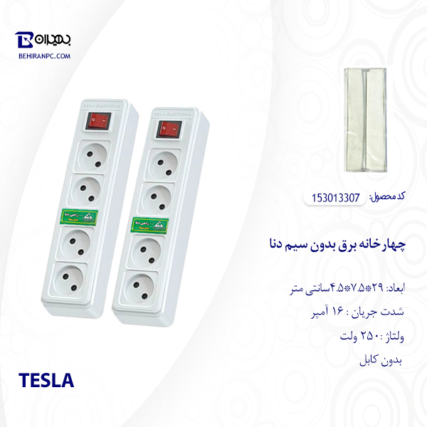 چهار خانه برق بدون کابل دنا مدل تسلا بسته دو عددی عدد