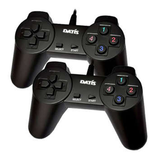 دسته بازی داتیس مدل DTS-701D به صورت بسته دوتایی عرضه شده و 14 کلید دارد. این گیم پد قابلیت شوک نداشته و به صورت سیمی از طریق پورت USB به کامپیوتر یا لپ تاپ متصل می شود.