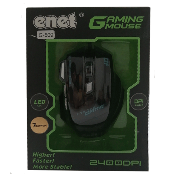 ماوس مخصوص بازی ای-نت مدل G509 با طراحی زیبا و نور LED یک گزینه بسیار عالی برای گیمرهاست. این ماوس با دقت 2400dpi می تواند تجربه بی نظیری در بازی های رایانه ای به شما بدهد. حسگر ماوس ای-نت اپتیکال و تعداد کلیدهای آن 7 عدد می باشد. اگر یک ماوس سریع، روان و با کیفیت می خواهید که شیک و زیبا باشد، به شما این محصول بی نظیر را پیشنهاد می کنیم.