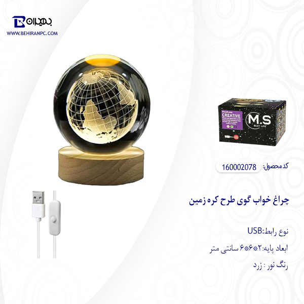طرح کره زمیننماد آگاهی، جستجو و ماجراجویی است. روشن شدن این چراغ میتواند الهامبخش حس سفر، کشف و کنجکاوی باشد و فضایی خاص و متفاوت به خانه یا محل کار شما بدهد.