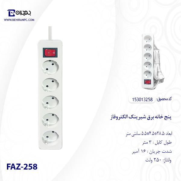 پنج خانه برق شیرینک الکتروفاز مدل FAZ-258 کابل 3 متر electro-faz-258-surge-protector