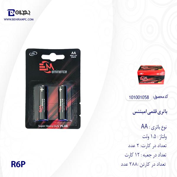 باتری قلمی امیننس مدل R6P با ولتاژ 1.5 ولت در بسته بندی 2 عددی عرضه می شود. از این باتری قلمی امیننس برای کیبوردها، موس های بیسیم، برخی از دوربین ها و… نیز استفاده میشود.