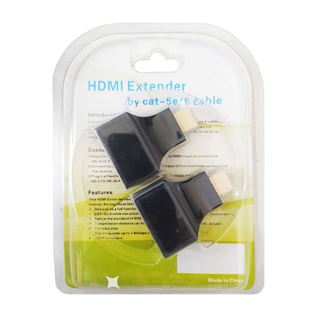 تبدیل اکستندر HDMI با کابل شبکه مدل 30M یک روش برای انتقال تصویر در فاصله های طولانی است. این محصول شامل دو قطعه مجزا بوده که در یک سمت مجهز به با پورت های HDMI و در سمت دیگر مجهز به درگاه RJ45 هستند. شما می توانید با استفاده از این تبدیل بدون نیاز به کابل HDMI صدا و تصویر را از یک دستگاه به دستگاه دیگر منتقل نمایید. این اکستندر تا فاصله 30 متری را پشتیبانی می کند.