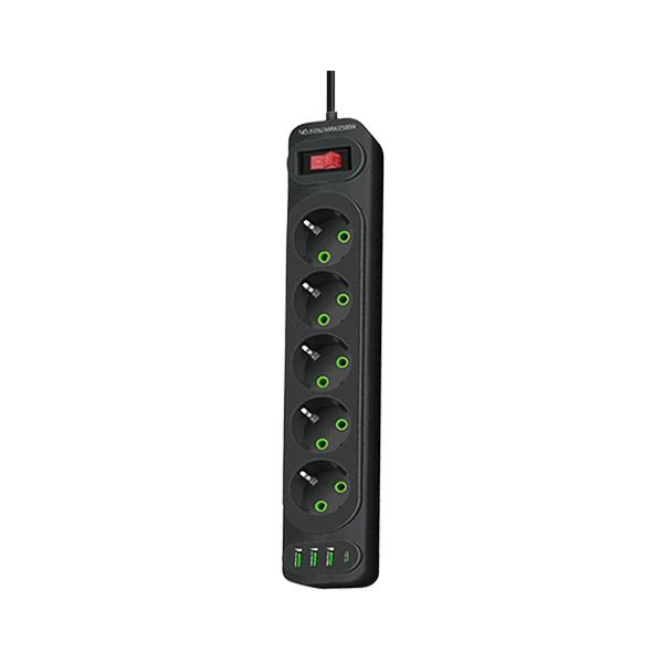 پنج خانه برق 1PD+3USB ارت دار F25U کابل 2 متر f25u-5-port-surge-protector