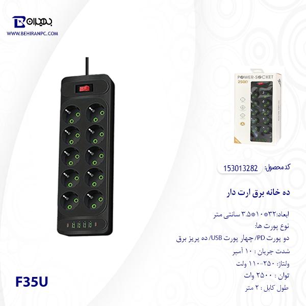 ده خانه برق 2PD+4USB ارت دار F35U کابل 2 متر