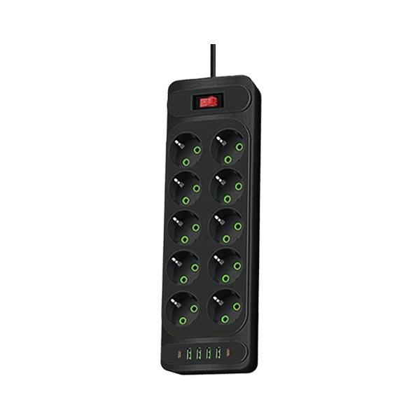 این محصول دارای 10 پریز برق است که برای اتصال دستگاههای الکتریکی مختلف مناسب است. با این تعداد پریز، میتوانید به طور همزمان دستگاههای مختلفی مانند کامپیوتر، لوازم خانگی، تلویزیون و سایر لوازم الکترونیکی را به برق متصل کنید.