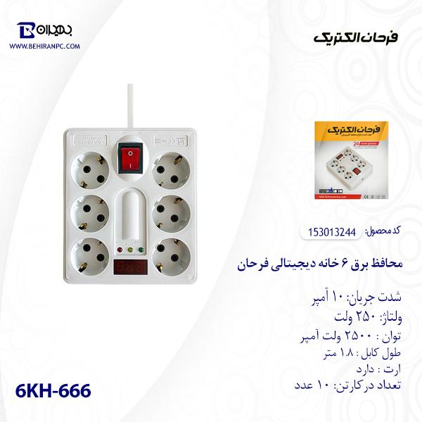 محافظ برق شش خانه دیجیتالی فرحان مدل 666 کابل 1.8 متر farhan-666-surge-protector-1-8m