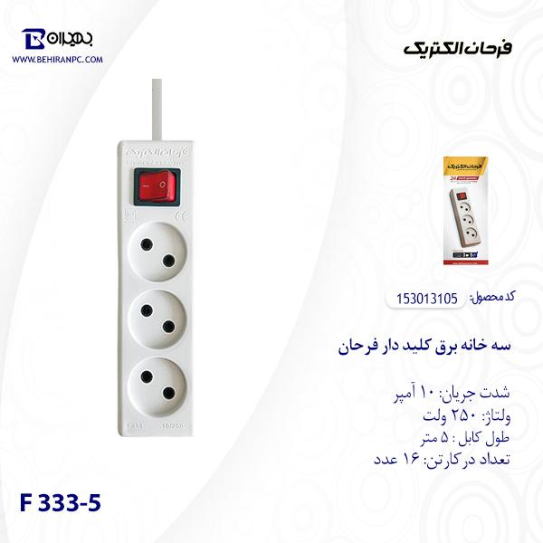 سه خانه برق استاندارد فرحان مدل F 333-5 کابل 5 متر farhan-f333-5-surge-protector-5m