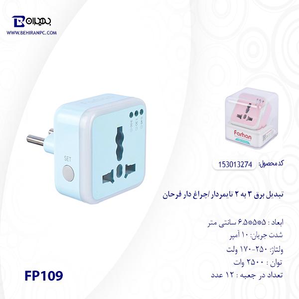 تبدیل برق 3 به 2 تایمردار/چراغ دار فرحان مدل FP109