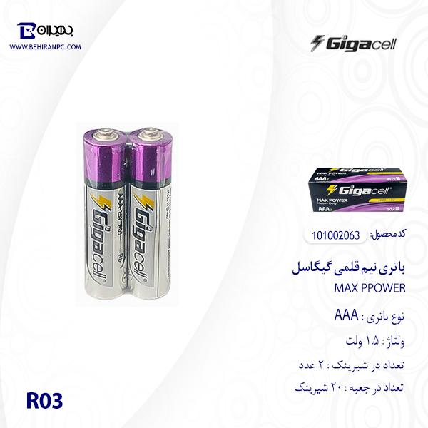 باتری نیم قلمی پریمیوم آلکالاین گیگاسل مدل LR03 بسته 4 عددی