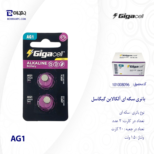 باتری سکه ای آلکالاین AG1 گیگاسل بسته 2 عددی