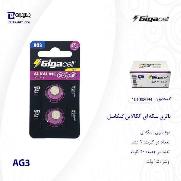 باتری سکه ای آلکالاین AG3 گیگاسل بسته 2 عددی