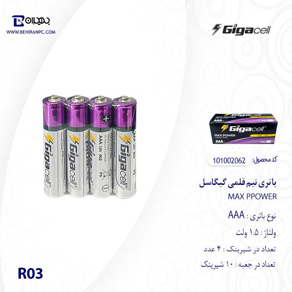 باتری نیم قلمی پریمیوم آلکالاین گیگاسل مدل LR03 بسته 4 عددی