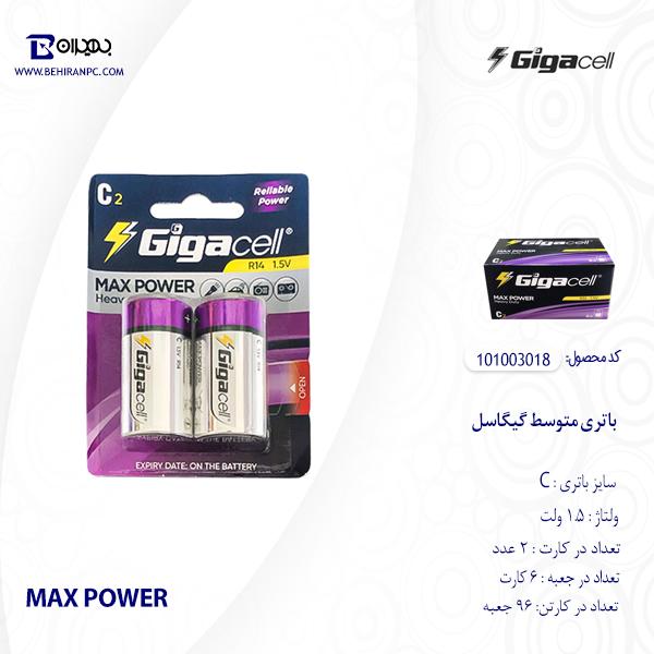 باتری متوسط گیگاسل مدل MAX POWER با ولتاژ 1.5 ولت در بسته بندی 2 عددی تولید و عرضه می شود.