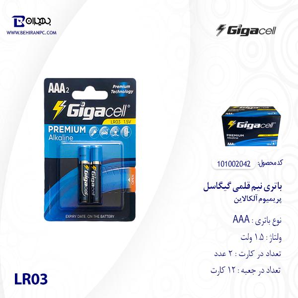 باتری نیم قلم آلکالاین پریمیوم گیگاسل مدل LR03 بسته دو عددی