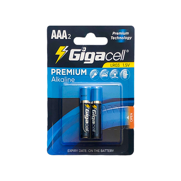 باتری نیم قلمی آلکالاین پریمیوم گیگاسل مدل LR03 با ولتاژ 1.5 ولت در بسته بندی 2 عددی عرضه می شود. از این باتری نیم قلمی آلکالاین پریمیوم گیگاسل مدل LR03 برای کیبوردها، موس های بیسیم، برخی از دوربین ها و… نیز استفاده میشود.
