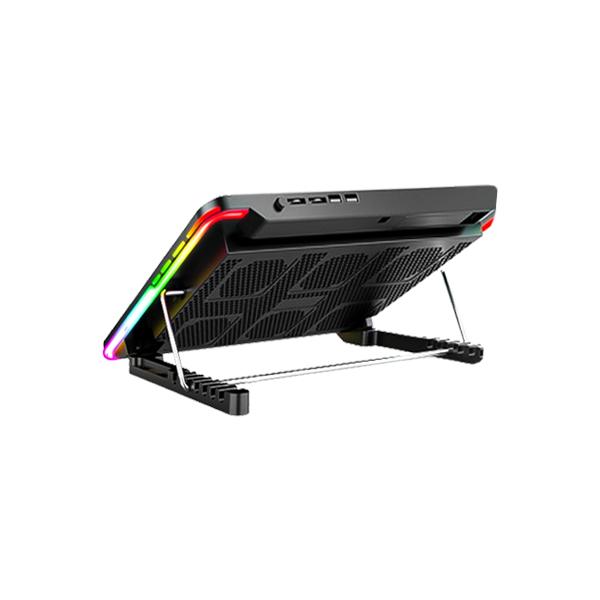 نورپردازی RGB جلوهای حرفهای و مدرن به میز کار یا گیمینگ شما میبخشد و پایهی قابل تنظیم ارتفاع نیز به بهبود وضعیت قرارگیری لپتاپ و کاهش فشار به گردن و مچ دست کمک میکند. همچنین وجود هلدر موبایل، این محصول را به یک ابزار کاربردی برای میز کار تبدیل کرده است.
