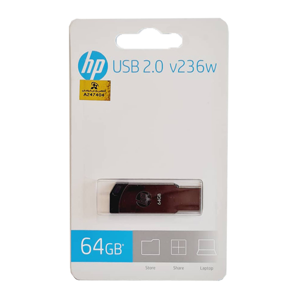 فلش مموری HP مدل v236W با 64 گیگابایت حافظه از نوع USB2.0 می باشد و سرعت انتقال داده نسبتا خوبی دارد. منبع تغذیه در این فلش مموری، لپ تاپ و کامپیوتر می باشد.