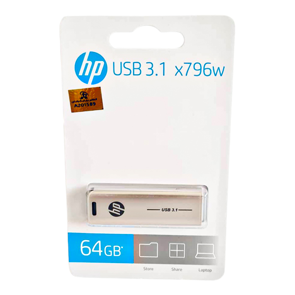 فلش مموری HP مدل x796W با 64 گیگابایت حافظه از نوع USB3.1 می باشد و سرعت انتقال داده نسبتا بالایی دارد. منبع تغذیه در این فلش مموری، لپ تاپ و کامپیوتر می باشد.