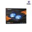 این مدل به دو فن بزرگ ۱۴۰ میلیمتری مجهز شده که با سرعت 1000 دور در دقیقه (RPM) هوا را بهصورت یکنواخت زیر لپتاپ جریان میدهند. فنها با نویز بسیار کم (۱۵ دسیبل) و عمر مفید ۴۰,۰۰۰ ساعت، بدون ایجاد مزاحمت صوتی، خنککنندگی مؤثری را ارائه میدهند. همچنین وجود نور LED آبی جلوهای زیبا و حرفهای به میز کار یا گیمینگ شما میدهد.