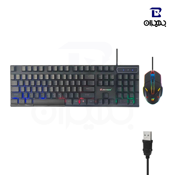 کیبورد این ست دارای 104 کلید استاندارد با طراحی مکانیکال است که حس و صدای شبیه به کیبوردهای حرفهای گیمینگ را به کاربر منتقل میکند. بدنه از جنس ABS مقاوم ساخته شده و حروف فارسی حکشده، استفاده از آن را برای کاربران ایرانی آسانتر کرده است. طراحی بهینه کلیدها باعث میشود دقت در بازی یا تایپ افزایش یابد.