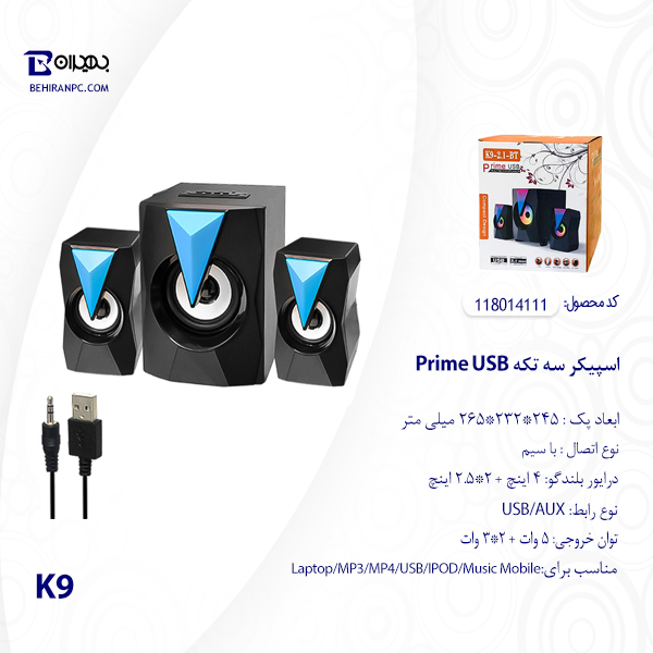 اسپیکر سه تکه Prime USB مدل K9 عدد