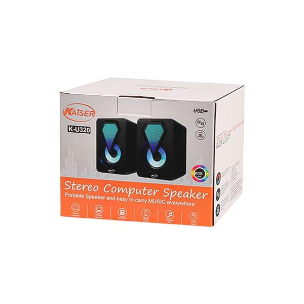 اسپیکر کایزر مدل K-U320 با طراحی زیبا و نورپردازی RGB تجربهای متفاوت از شنیدن موسیقی و تماشای فیلم را برای شما فراهم میکند. این اسپیکر با اتصال USB و AUX سازگار با انواع دستگاهها بوده و بدون نیاز به نصب نرمافزار بهراحتی آماده استفاده است.