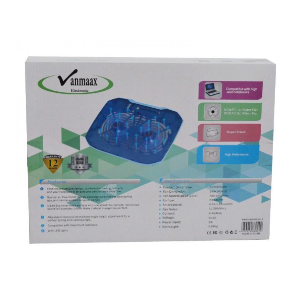 پایه خنک کننده بزرگ لپ تاپ وان مکس مدل 1480 2F یکی از کول پد های از برند وان مکس می باشد که با طراحی منحصربفرد تولید شده است. پایه خنک کننده بزرگ لپ تاپ وان مکس مدل 1480 2F با ولتاژ ورودی 2 ولت به 2 فن قدرتمند با سایز 15*140*140 میلی متر و سرعت چرخش 1500-750 دور بر دقیقه مجهز شده است. جنس بدنه پایه خنک کننده بزرگ لپ تاپ وان مکس مدل 1480 2F از پلاستیک مقاوم و فلز می باشد و مجهز به فناوری بی صدا و دارای چارغ LED می باشد.
