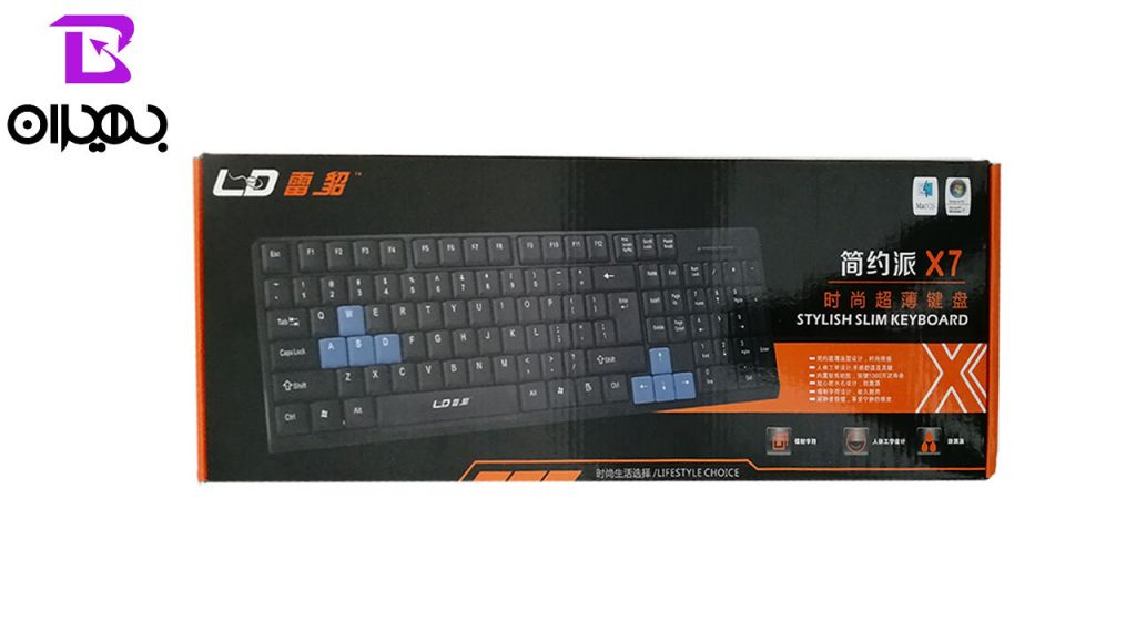 کیبورد ال دی مدل x7 ps2 با داشتن 104 کلید با سیم است و از طریق پورت ps2 به کامپیوتر شما متصل می شود .