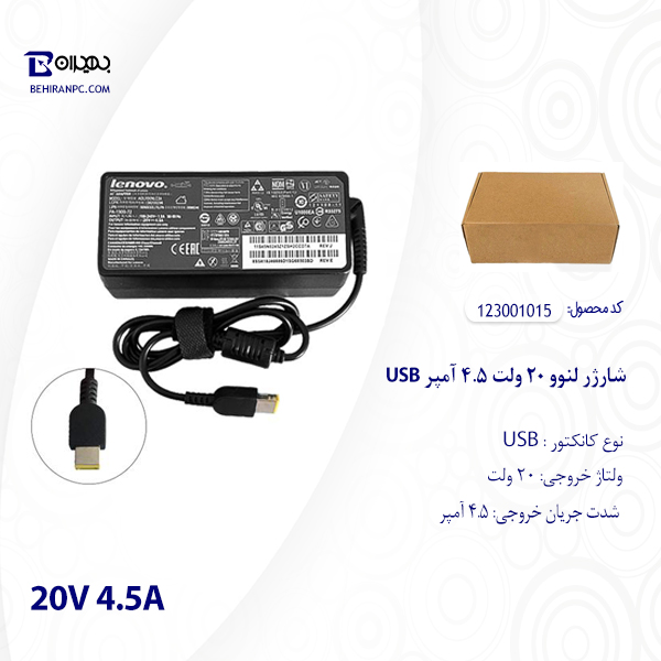 شارژر لنوو 20 ولت 4.5 آمپر USB