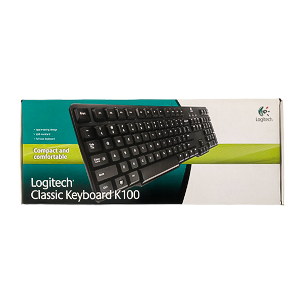 کیبورد k100 محصولی از شرکت لاجیتک می باشد که مجهز به رابط اتصال PS2 و کابل تبدیل PS2 به USB است. این کیبورد جمعا دارای 104 کلید است و با با سیستم عامل های Windows XP, Windows Vista, Windows 7, Windows 8 سازگاری دارد.