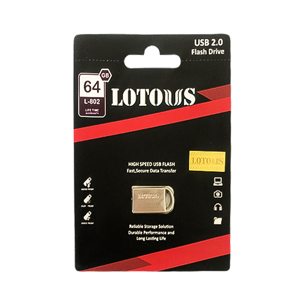 فلش مموری 64G لوتوس مدل L802 با ظرفیت 64 گیگابایت و بدنه فلزی، یکی از بهترین فلش مموری های برند لوتوس است. این فلش مموری دارای پورت USB2.0 بوده و در مقابل آب، گرد و غبار، شوک و لرزش مقاوم می باشد.
