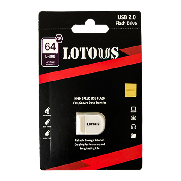 فلش مموری 64G لوتوس مدل L808 با ظرفیت 64 گیگابایت از بهترین فلش مموری های لوتوس است. این فلش مموری ضد آب بوده و در مقابل گرد و غبار و شوک و لرزش مقاوم می باشد.